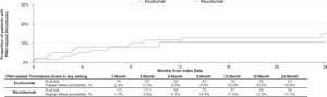 During a mean ± SD follow-up duration of 17.1 ± 19.6 and 18.4 ± 11.1 months, 12.0% of patients experienced PNH-related thrombosis in the eculizumab and ravulizumab cohorts, of which, 20.0% and 28.6% were observed in an inpatient setting, respectively. Based on the KM analysis, the 6- and 12-month rates of PNH-related thrombosis post-index were 8.0% and 10.6%, respectively for the eculizumab cohort, and 6.1% and 11.6%, respectively, for the ravulizumab cohort (Figure 1).