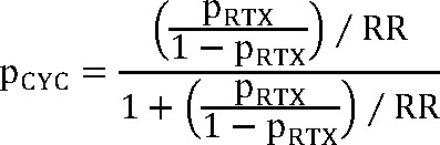 where pCYC = probability of response with cyclophosphamide; pRTX = probability of response with rituximab, and RR = risk ratio.