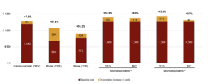 Significant cost increases for comorbidities were also observed with tenofovir disoproxil, specifically, a 55.77% rise in renal comorbidity costs and a 15.2% increase in bone-related costs compared with the current scenario. Similarly, under the assumptions of the alternative scenario, applying the prevalence increase linked to darunavir use led to a projected 6.76% increase in cardiovascular comorbidity costs relative to the current scenario.