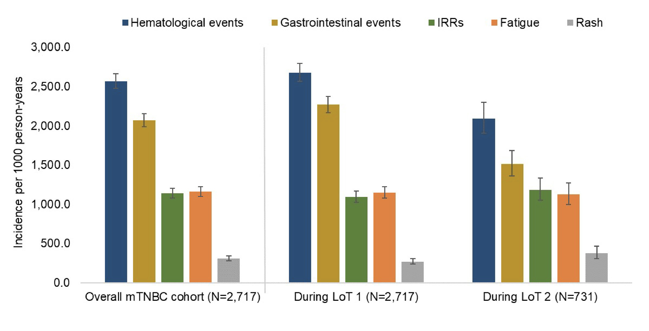 Abbreviations: CEI, clinical events of interest; mTNBC, metastatic triple-negative breast cancer; LOT, line of therapy; IRRs, infusion-related reaction.