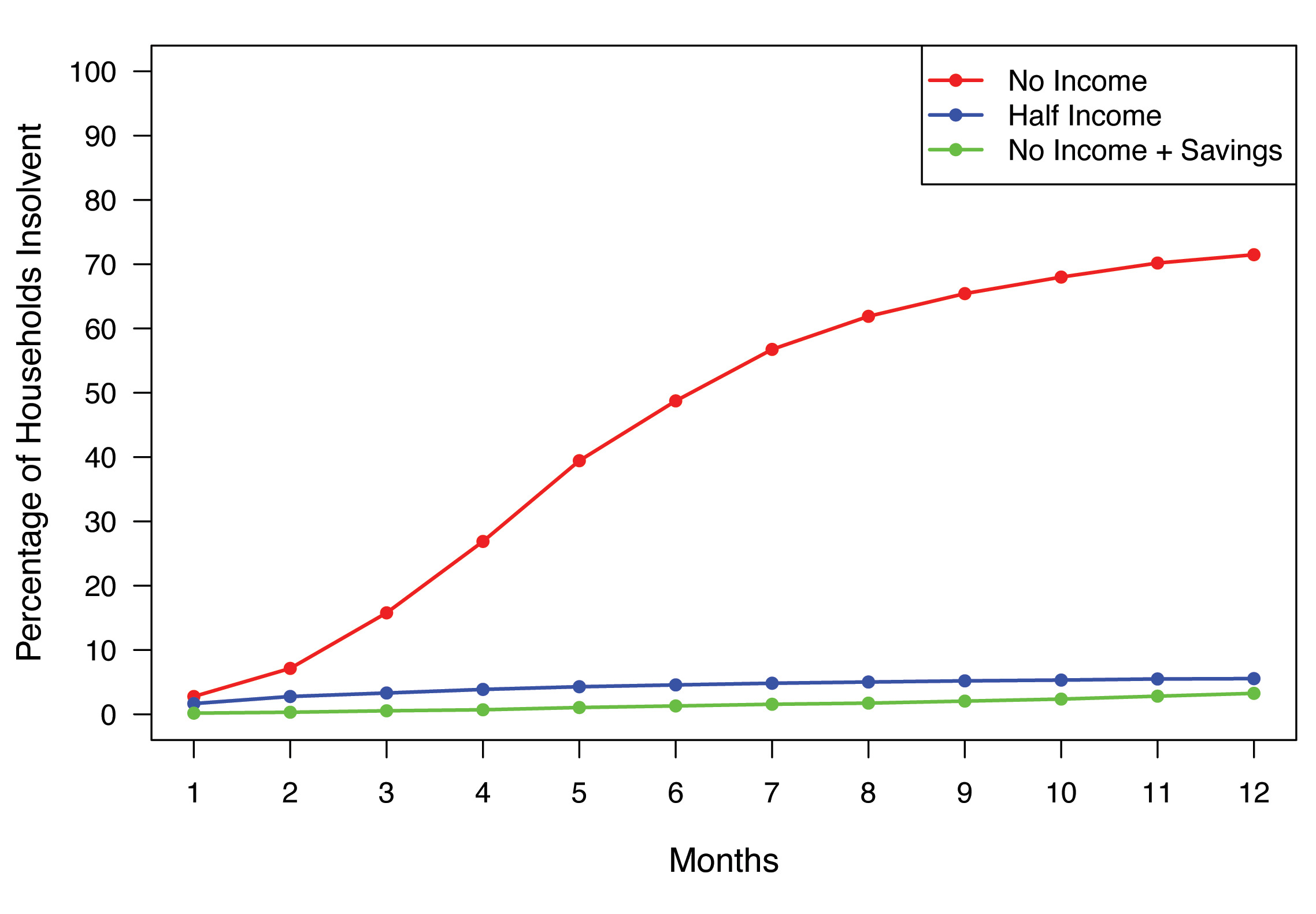In summary, the economics of US health insurance continues to materially evolve. The premium tax credits that were a vital component of the Affordable Care Act are currently in jeopardy. Despite recent passage by the US House of Representatives of a bill to extend such credits for 3 more years, Senate approval awaits and is not a certainty. Without this credit, health insurance premiums will substantially rise for many households, another variable to factor into financial vulnerability analysis. This is not modeled in our analysis and would need to factor in both reduced household participation in health insurance markets, and greater monthly expenses, both of which would further increase the insolvency rate.