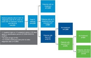 Abbreviations: FL, follicular lymphoma; ICD, International Classification of Diseases; LOT, line of treatment.