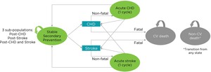 Another limitation results from the absence of a specific Framingham equation for predicting recurrent stroke and, therefore, from using a relative risk of recurrent vs primary stroke calculated from the literature.66 Estimating non-CV-related mortality from general population mortality tables is a further limitation. It may underestimate non-CV-attributable mortality due to patients with CV disease presenting a higher risk of death due to comorbidities compared with the general population.