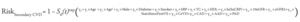 where SBP is systolic blood pressure, TC is total cholesterol, HDL is high-density lipoprotein, hsCRP is high-sensitivity C-reactive protein, eGFR is estimated glomerular filtration rate, VE is vascular event, CeVD is cerebrovascular disease, CAD is coronary artery disease, AAD is antiarrhythmic drugs, and PAD is peripheral arterial disease. Since the S0 estimate corresponds to a period of 10 years, risk estimates obtained with the SMART risk equation were adjusted to the cycle-length assuming a constant rate over the 10-year period (Supplementary Table S1.2). Non-CV-related mortality was determined by general population mortality tables.42